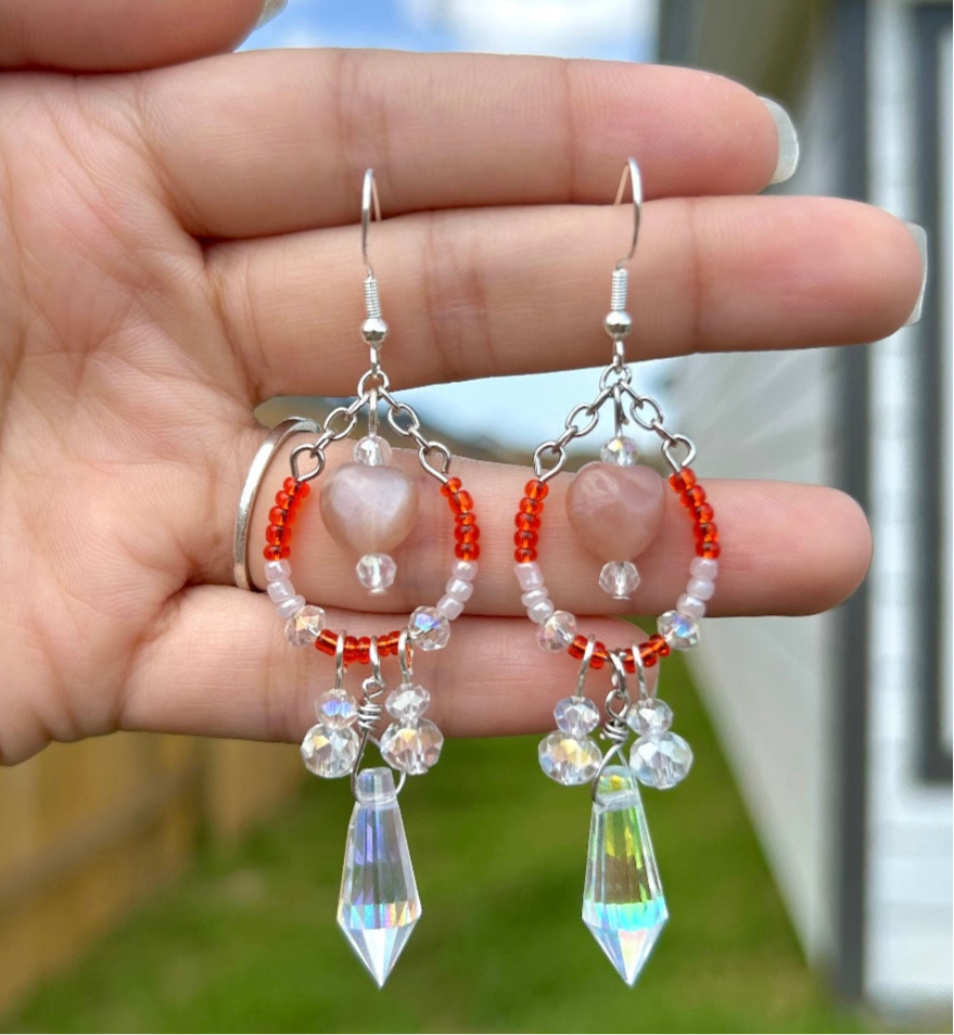 Enhance your style with our Chandelier Heart Earrings. Handcrafted with genuine crystals and glass beads, these dazzling dangle earrings add elegance and sparkle to any outfit. Elevate your look with the perfect accessory for any occasion.