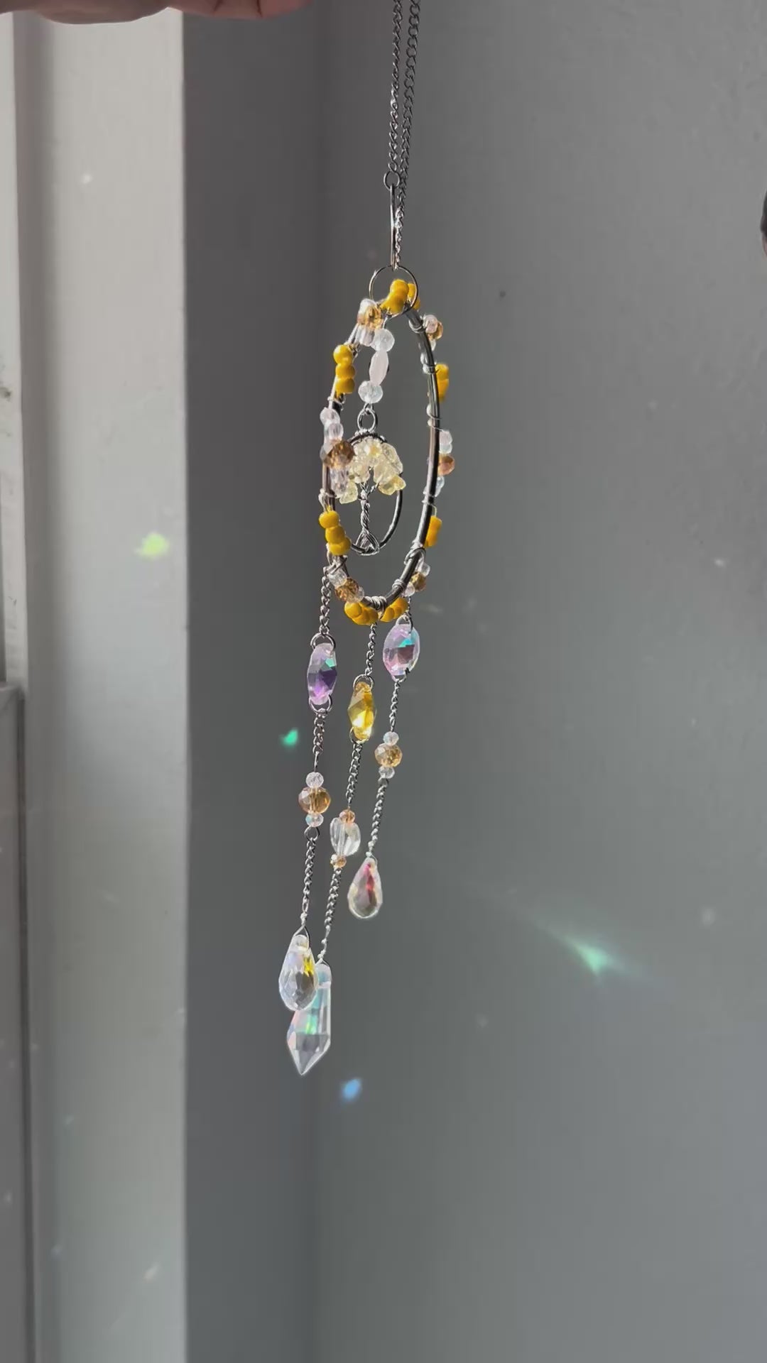 Handcrafted with sterling silver chain, glass beads and genuine citrine crystals.