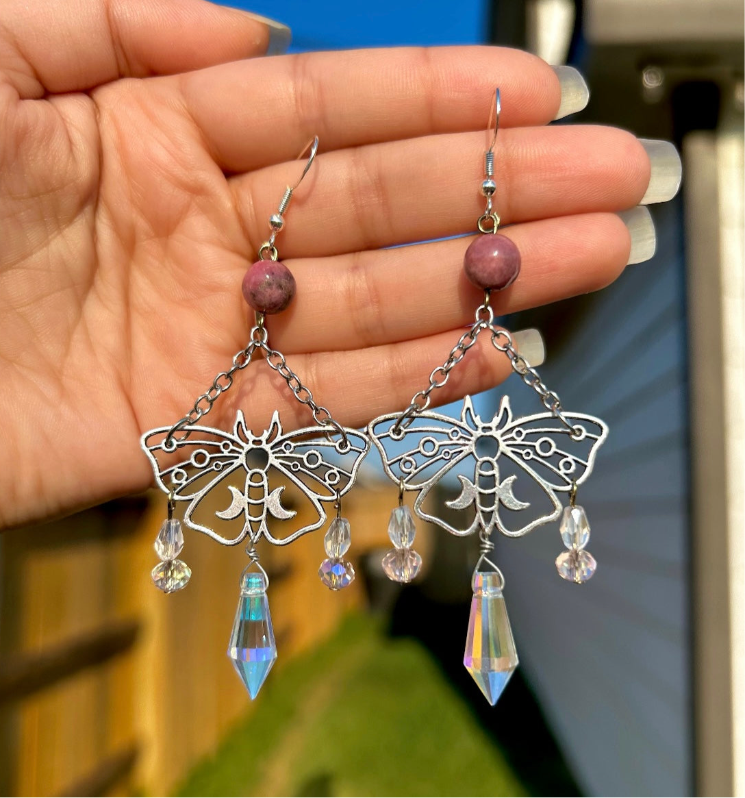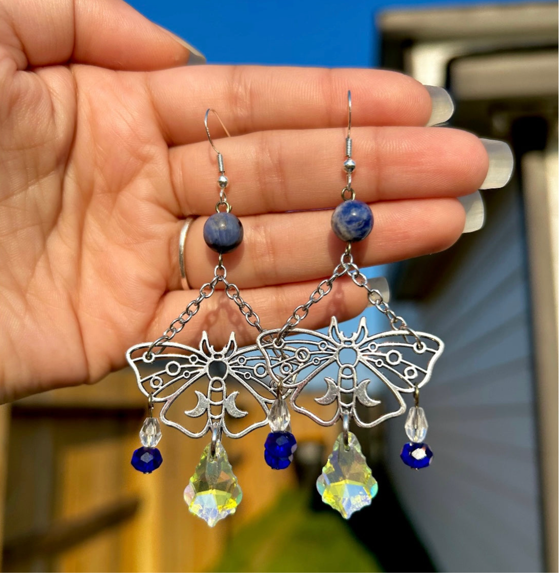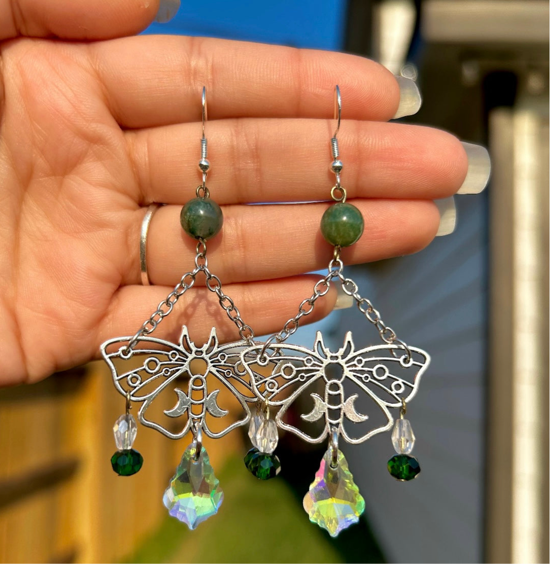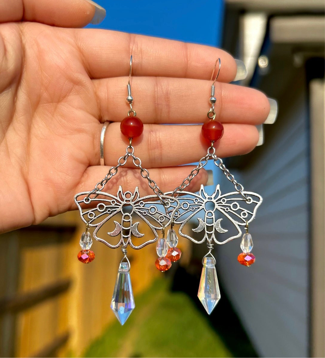 These elegant Crystal Moth Earrings feature sparkling crystals and charming moth accents. The perfect accessory for any occasion, these earrings add a touch of sophistication and beauty to any outfit. Show your unique style and appreciation for nature with these exquisite earrings.