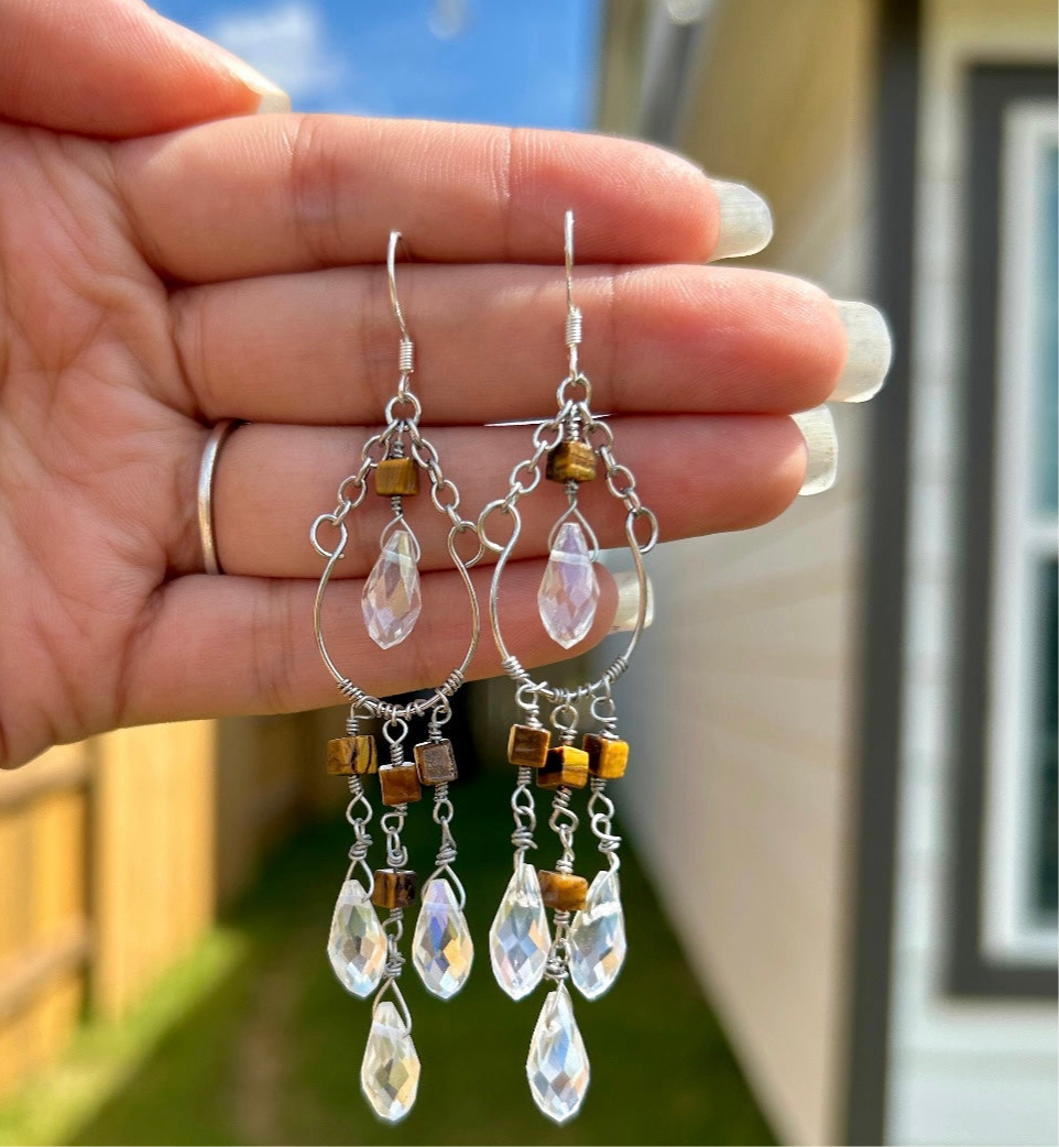 Expertly crafted for an elegant look, these Intricate Chandelier Earrings feature genuine crystals and .925 silver wire wrapping for added sophistication. Elevate any outfit with these dangle earrings that showcase your refined taste and style.