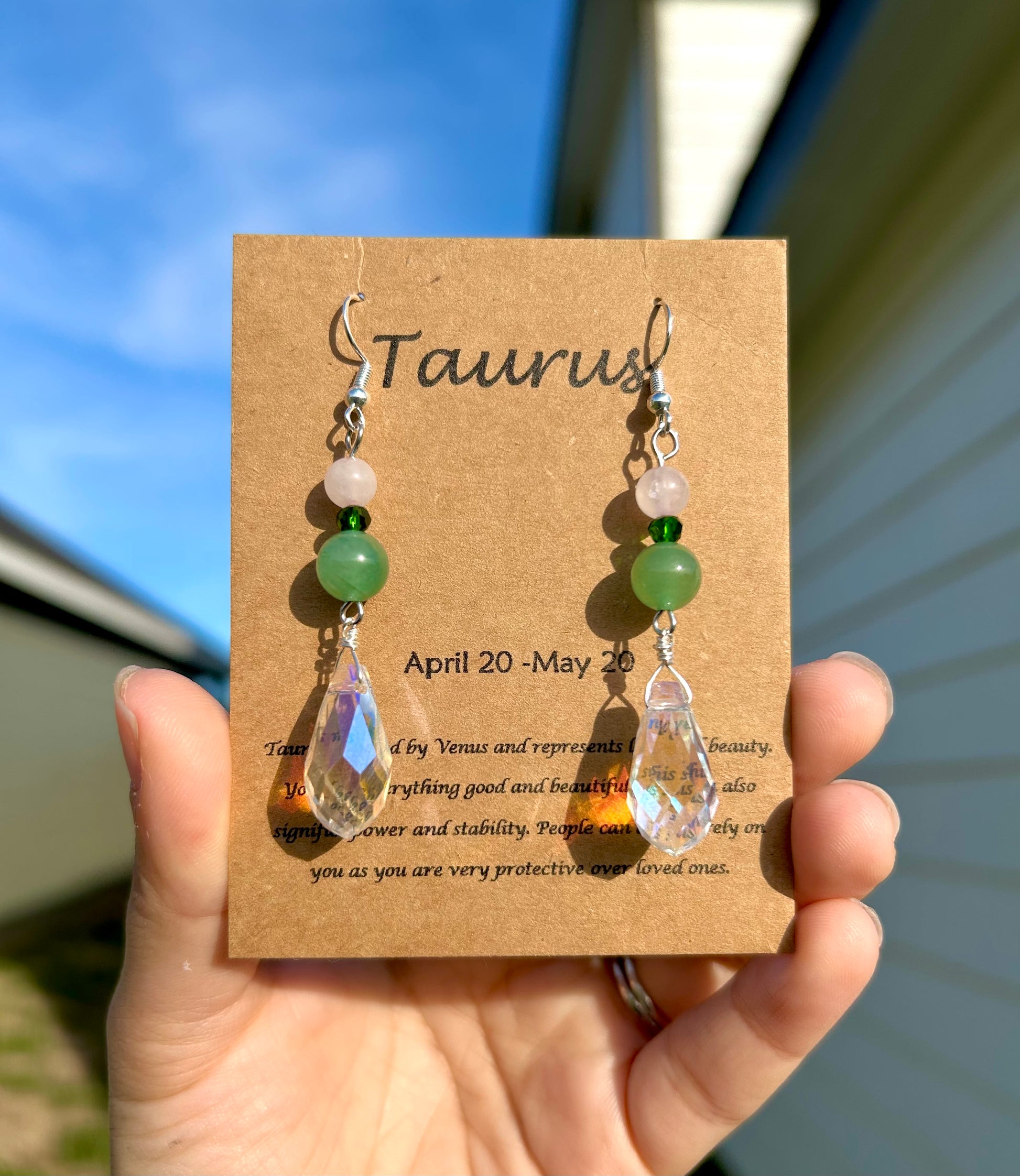 Handcrafted with silver plated wire, glass beads and genuine rose quartz and green aventurine crystals.